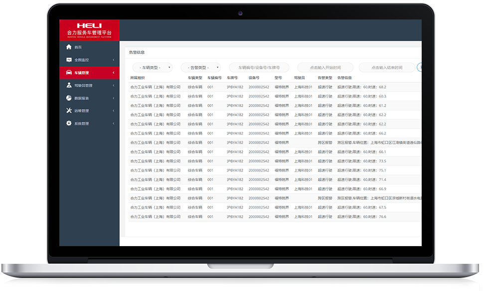 所屬組織車輛實時定位跟蹤,監(jiān)控車輛的實時位置信息、車輛開關(guān)機狀態(tài)、車速、定位狀態(tài)、故障告警等。隨時了解車輛的行蹤,全面掌握車隊的運行狀態(tài)。